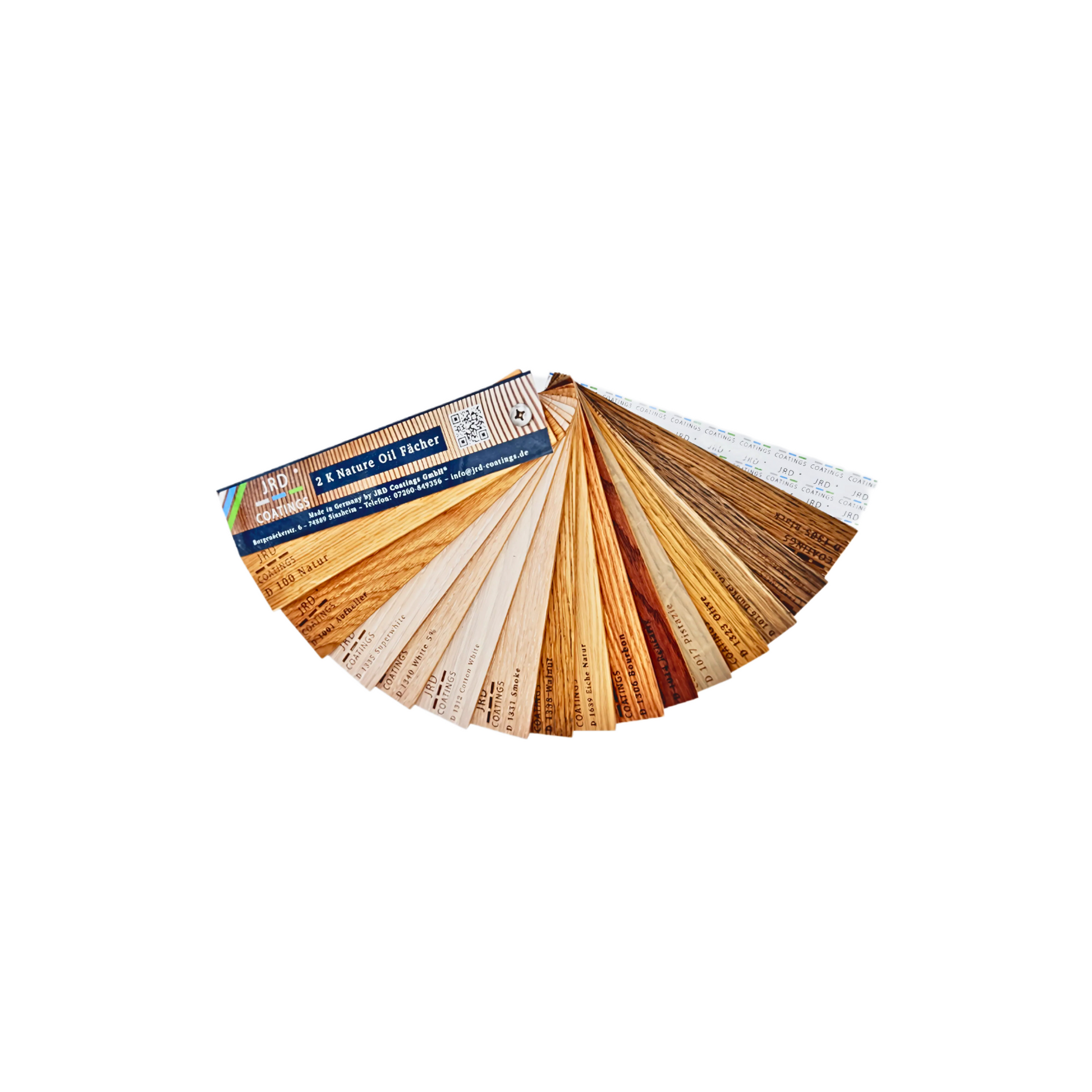 With the JRD 2K Oil Fan from JRD Coatings®, you have a tool in your hands that impressively showcases the versatility and quality of JRD 2K Nature Oil. This color fan is ideal for anyone looking for the perfect color for their wood surfaces without compromising on quality.